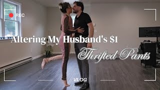 Tackling my alterations pile part 1 making jeans larger with warm water and taking clothes in sewing
