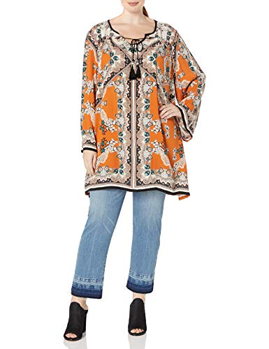 6 . Angie Juniors’ Plus-Size Spice Printed Bell-Sleeve Dress
