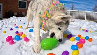 My Dogs Go Easter Egg Hunting 🐰 Finding Easter Eggs in the Snow!
