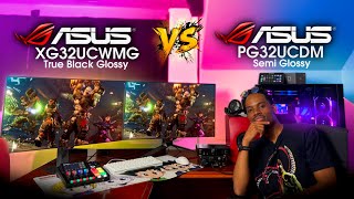 PG32UCDM Gen 3 vs XG32UCWMG — True Black Glossy vs Black Shield