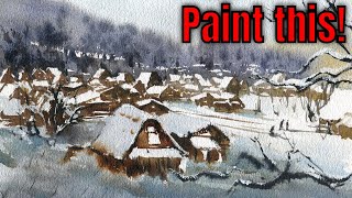Anyone Can Paint This Cozy Snow Village | Beginner Watercolor Tutorial