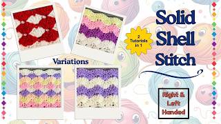 Crochet Solid Shell Stitch & Variations with Colour Right & Left Hand Tutorial