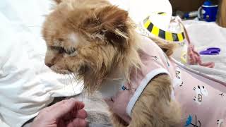 Athena home after surgery to remove a tumor