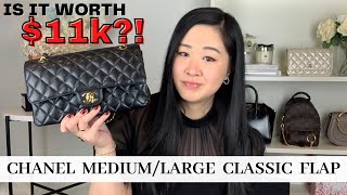 CHANEL MEDIUM/LARGE CLASSIC FLAP REVIEW, WEAR & TEAR, WHAT FITS & MOD SHOTS | CHANEL PRICE INCREASE