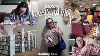 weekend vlog: book shopping, cozy hobbies, + clothing haul