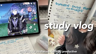 STUDY VLOG 🎧🍡 studying for midterms, GRWM for school, taking notes, productive morning