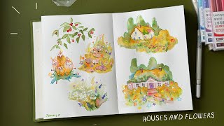 sketchbook session | cute houses and flowers